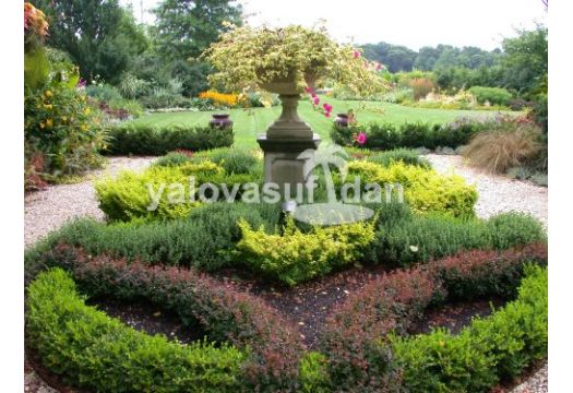 dikenli çit yapabilir yada göbek içine berberis, dış yuvarlağına altuni taflan yaparsanız harika görünüm elde edersiniz güneşli yere dikiniz, yaprakları bordo rengindedir, 9.resimdeki gibi sarı çiçekcikler verir, güneş sever saksıda büyütmeye uygundur,ilkbaharda kırmızı açan yeni çiçekler yazın bordo renge döner ve kışın yaprağını dökene kadar bordo renkte kalr