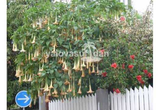 çiçekleri aşağıya doğru bakan ilginç bir bitkidir,en şiddetli kokan sarı çiçekli olan cennet borazanıdır