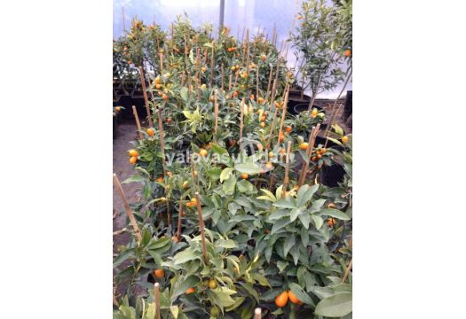 Kumkuat Fidanı Kumkat Kamkat 40-50 cm meyve verir halde SON 6 RESİM KIŞIN MEYVELİ İKEN KUMKUATIN ORJİNAL RESMİDİR mevsimi gelince (kışın) üzerinde meyvelerini görürsünüz POŞET İÇİNDE tek gövdeli (tijli) gövde kalınlığı kurşun kalem kalınlığında,kışın makasla budamak yolu ile bitkiye istediğiniz görünüş ve formu verebilirsiniz meyveleri üzerinde uzun süre kalır Kumkuat Fidanı Kumkat Kamkat - Faydaları: C vitamini bakımından zengin olan Kumkuat, kabuğu ile beraber yenildiğinde gribal enfeksiyonları önlemede önemli rol oynamaktadır. A, B1, B2, B3 vitaminleri ve Kalsiyum da ihtiva eden Kumkuat, sinir sisteminin düzenli çalışmasını sağlar. Dünyada kabuğu ile beraber yenilen tek narenciye çeşididir. Evlerde, balkonlarda yetiştirilen belki de tek meyve ağacı Kumkuatdır. Anavatanının Çin olduğuna inanılır.Kışın sert geçtiği bir yerde yaşasanızda bile, ılıman bölgelerde dışarıda yetiştirilen bitkileri kış bahçesine davet edebilirsiniz. Tropik bitki çeşitlerini seçtiğiniz takdirde, sıcak bir görüntüye kavuşursunuz. Kış bahçesinin cam kısımları açılır kapanır şekilde yapılır. Böylece, bitkileriniz yaz sıcaklarından daha az etkilenir. Unutmayın ki, bitkiler gün ışığıyla beslenir, geceleri aşırı sıcaktan rahatsız olur. Kış bahçesinin her noktasına eşit miktarda ışık gitmiyorsa, düzenli olarak saksıların çevrilmesi gerekir. Aksi halde bitkiniz hangi yönden ışık alıyorsa, o yönde gelişir. Bu da formunun bozulması anlamına gelir. Bitkileriniz için seçeceğiniz toprak, strilize edilmiş, hafif ve aynı zamanda organik maddece zengin olması gerekir. Bu bitkilerin saksı değişim döneminde topraklarının da yenilenmesi gerekir. Gelişimlerine göre toprakların da değişmesi gerekir. Sulamanın önemide büyüktür. Otomatik sulama sistemleri sayesinde işleriniz kolaylaşabilir. Bizzat ellerinizle sulayacaksınız, ılık ve bekletilmiş su tercih edilebilir. Böylece bitkilerin ömrünü uzatabilirsiniz. Hangi Bitkiler Seçilebilir? Kumkuat Fidanı Kumkat Kamkat : Turunçgiller içinde küçük mücevher olarak adlandırılan bu bitki, güzel meyvelere sahiptir. Organik maddece zengin toprak ister. Güneşe bayılır. Güzel bir kokusu vardır. Bahar aylarında oluşan beyaz çiçekleri, yaz döneminde meyveleri takip eder. Toprak nemli kalıncaya kadar sulamanız yeterlidir
