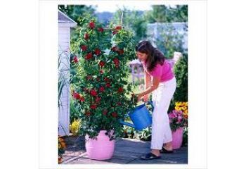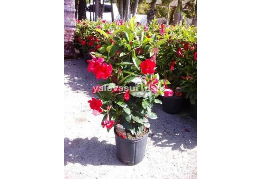 Mandevilla Dipladenia kırmızı çiçekli 30-40 Cm Kafes bambu'ya sarılı halde,