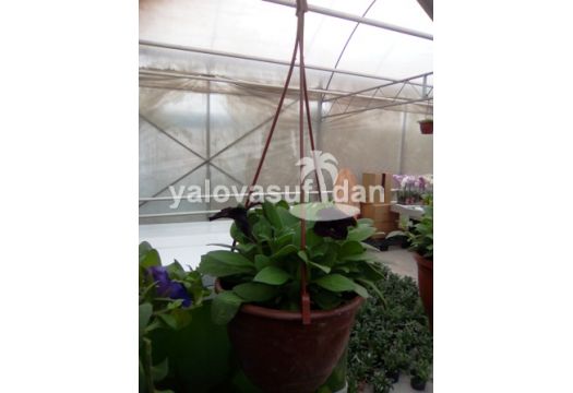 petunya çiçeği askılı saksıda siyah çiçekli,üzeri kadifeli , ender bulunan bir renktir